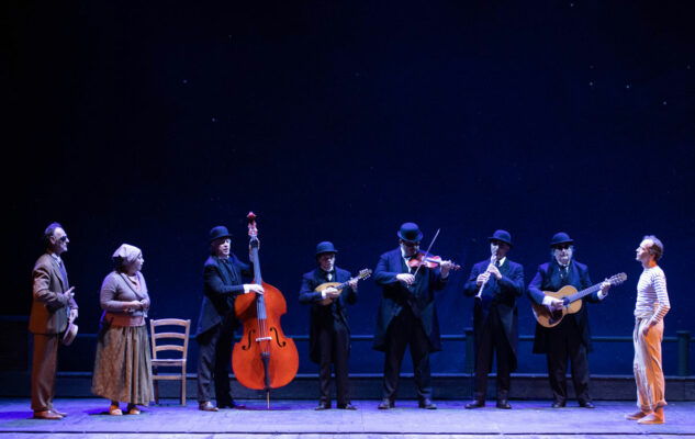 Il programma della serata mette insieme la figura di Giacinto, un anziano rispettabile continuamente tormentato da una folla strampalata, e la storia di un’orchestra ambulante formata da musicisti non vedenti. Guidati da un uomo che ci vede da un occhio solo, questi artisti di strada cercano di sbarcare il lunario accompagnati da canzoni che Viviani stesso inventò senza saper scrivere una sola nota sul pentagramma. Insieme a un cast di giovani promesse, sul palco vedremo Peppe Lanzetta, Lorenzo Gleijeses e Chiara Baffi, capaci di dare un volto vero a Ferdinando, il contrabbassista, e alla sua Nannina, in uno spettacolo che ricorda le grandi opere europee ma con un sapore tutto napoletano.